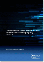 Diese Datendokumentation beschreibt den Scientific Use File der BAuA-Arbeitszeitbefragung 2019, Version 2, den das Forschungsdatenzentrum der Bundesanstalt für Arbeitsschutz und Arbeitsmedizin (FDZ-BAuA) Nutzerinnen und Nutzern für wissenschaftliche Forschungsvorhaben zur Verfügung stellt. Der Scientific Use File enthält Daten von 9 382 Personen, die im Rahmen der dritten Erhebungswelle dieser repräsentativen Panelbefragung von Erwerbstätigen in Deutschland zu ihrer Erwerbssituation, Aspekten der Arbeitszeit, anderen Arbeitsbedingungen und ihrer Gesundheit und ihrem Wohlbefinden befragt wurden. Eine separate Datendatei enthält Daten eines Kurzfragebogens für 1.158 nichterwerbstätige Panelteilnehmende. Die Datendokumentation vermittelt einen Überblick über die verfügbaren Daten, dient der Dokumentation der Datenaufbereitung und beschreibt Verknüpfungsmöglichkeiten mit den vorhergehenden Befragungswellen.