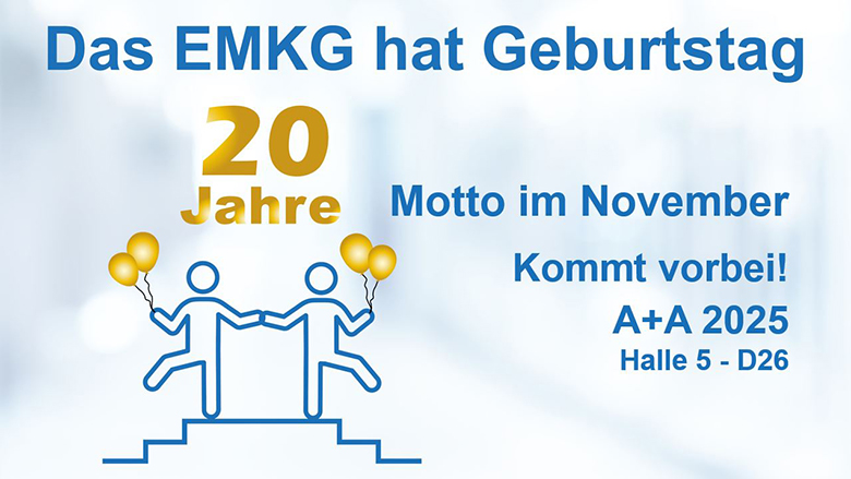 Feiern Sie mit uns am 3. und 4. Dezember "20 Jahre EMKG". Möchten Sie dabei einen Preis gewinnen, dann bewerben Sie sich mit einer Idee oder einem Praxisbeispiel zum EMKG. Die Kreativsten laden wir ein, Ihre Ideen live auf der Jubiläumsveranstaltung "20 Jahre EMKG" vorzustellen. Die Bewerbungsfrist endet am 31. Oktober 2025.